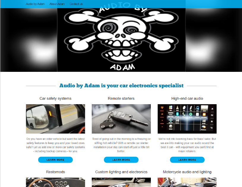 Adam Tambascio designs and installs custom vehicle audio, safety and other electronic systems. Audio By Adam does great work from his Highland, NY, shop, but didn’t have a presence on the internet.